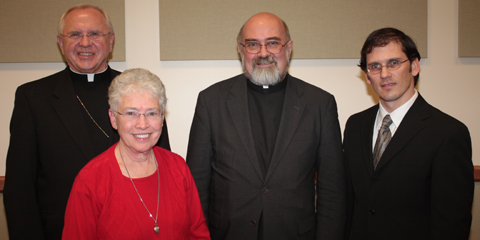 From L to R: Bishop Eugene Gerber, Sr. Tarcisia Roths, ASC, Fr. Robert Schreiter, C.PP.S., Dr. jamey Findling. Photo by Kelly Snedden.